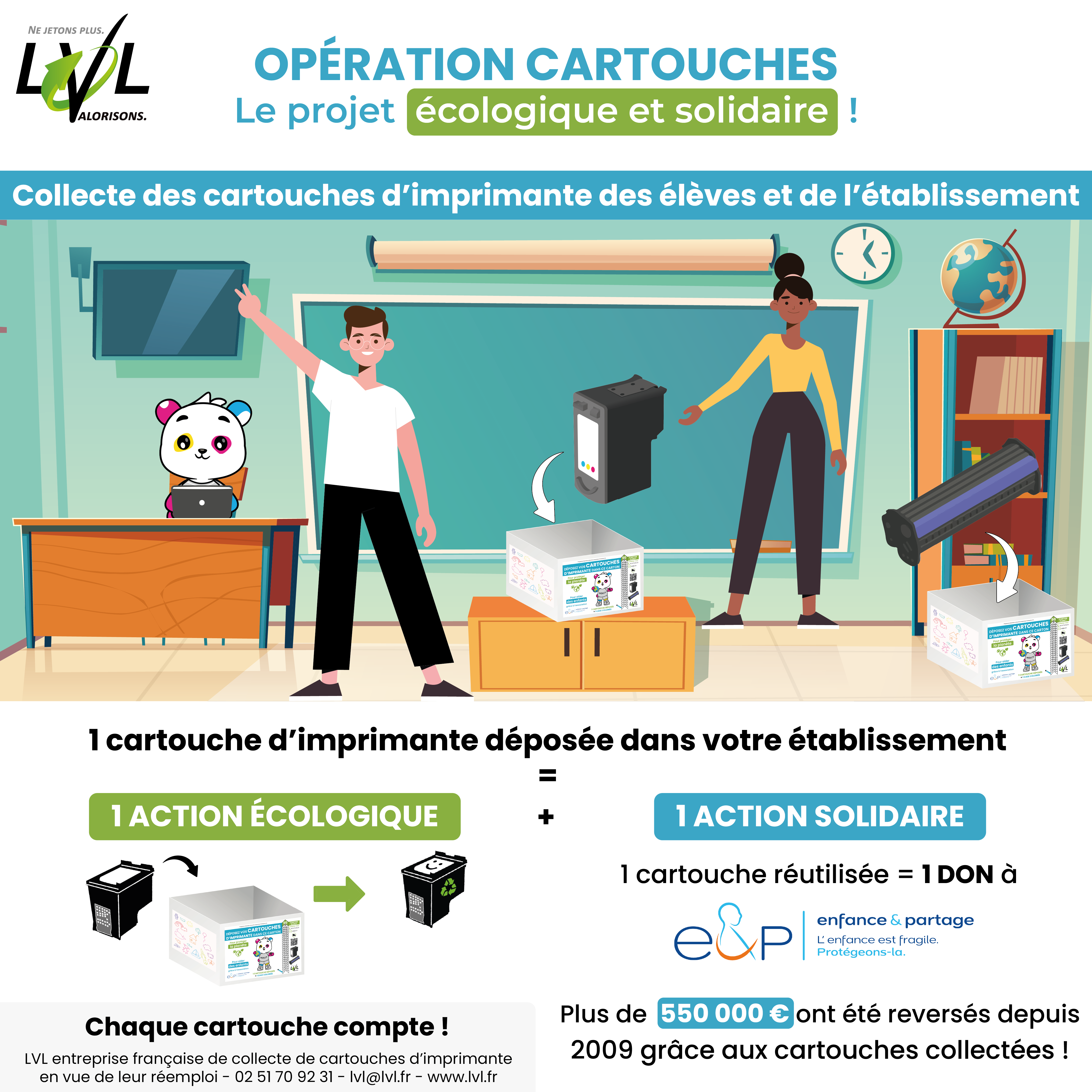 Notre mascotte Holly accompagne vos élèves tout au long de l’année à travers différents supports. Varier les canaux de communication vous permettra d’impliquer toutes les parties prenantes dans votre collecte de cartouches écologique et solidaire !